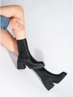 Módní dámské černé kotníčkové boty na širokém podpatku