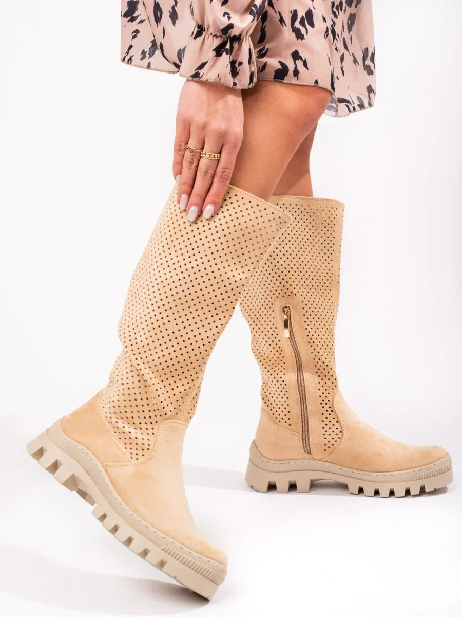 Přidání recenze k Módní dámské hnědé kozačky na plochém podpatku