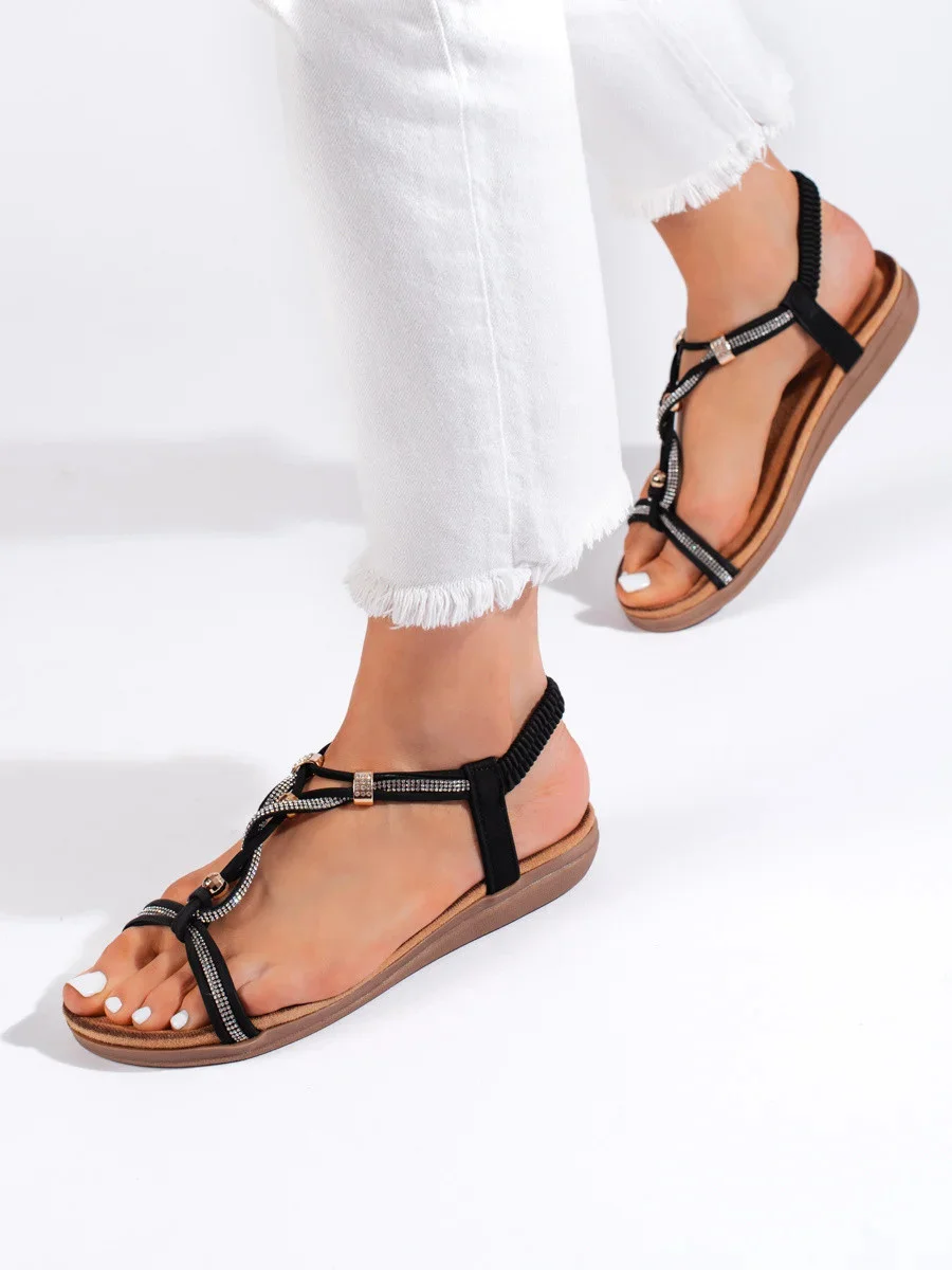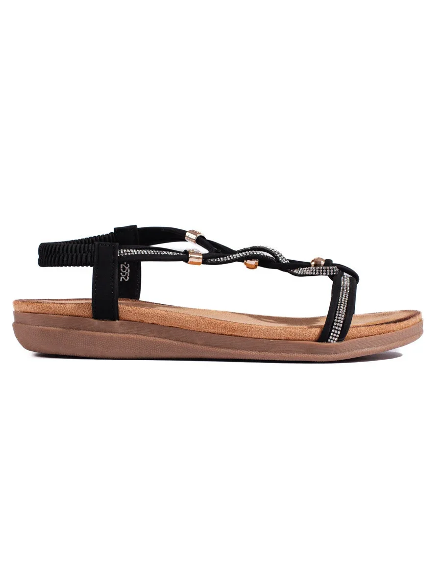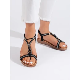 Přidání recenze k Módní dámské sandály černé na plochém podpatku