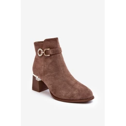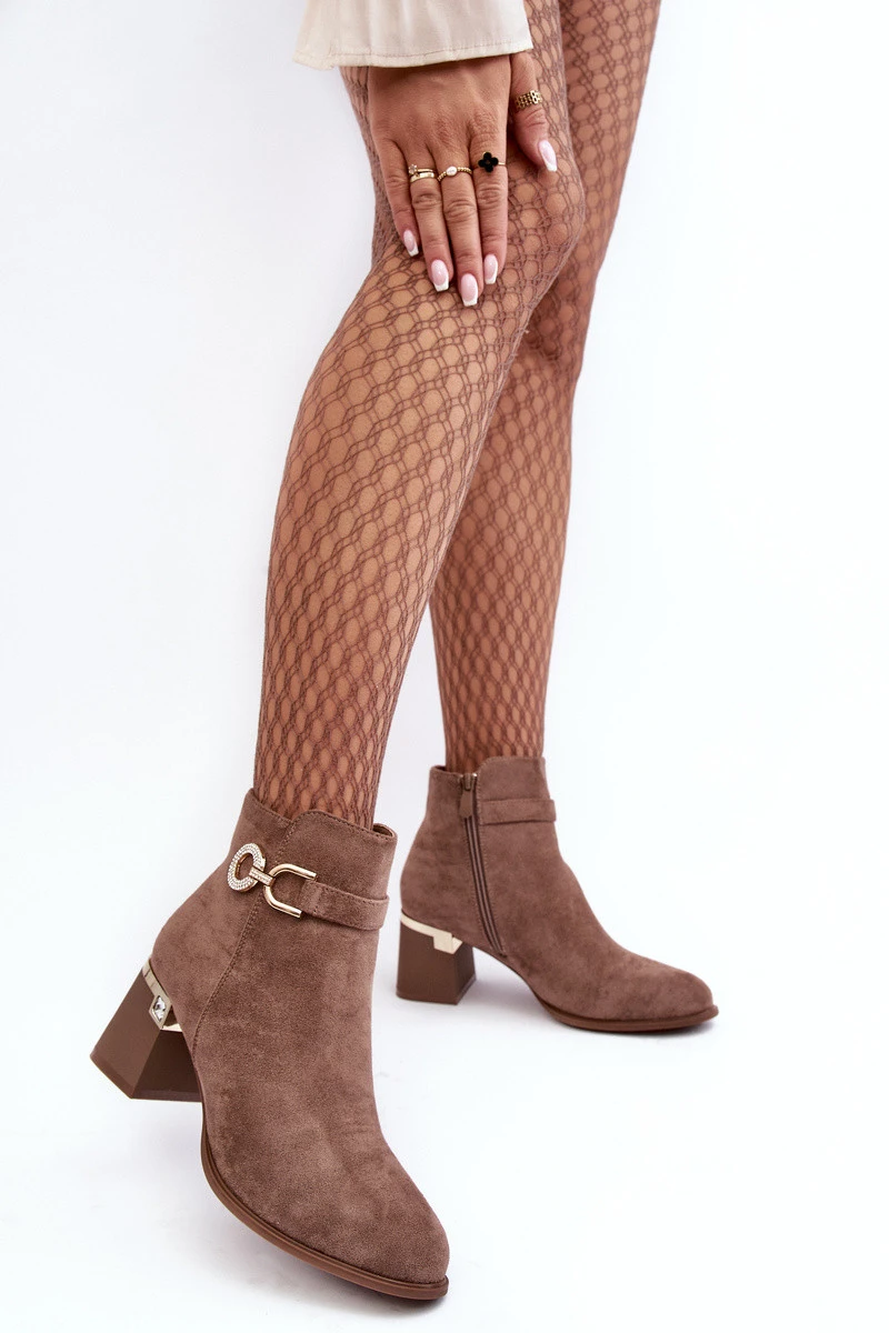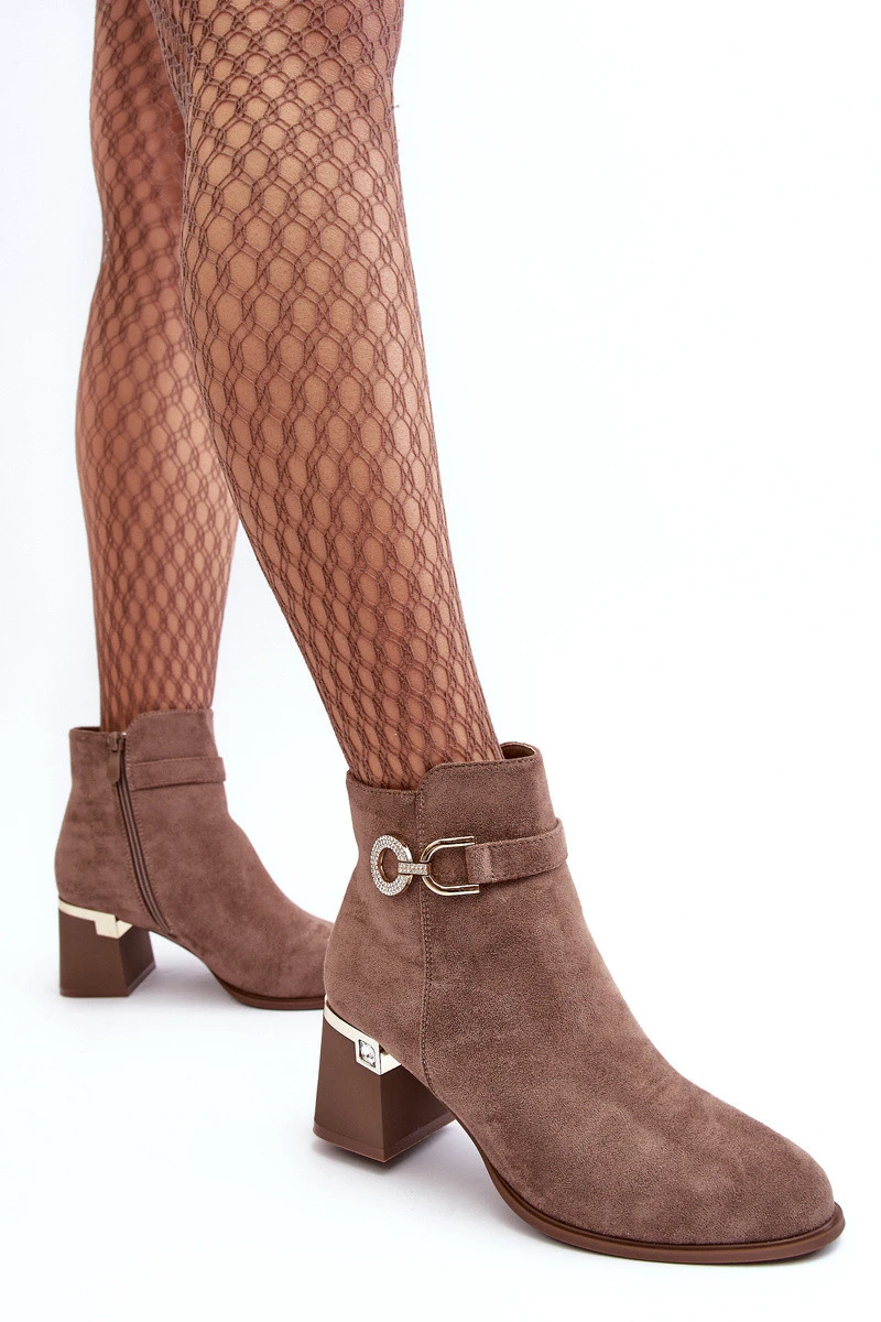 Tento ženský botek je upevněn na zdobeném podpatku v podobě sloupku. Tento model je vyroben z eko semiše. Na boku botky je umístěna ozdoba s kameny, z druhé strany je zip, který usnadňuje obouvání. Vnitřek tohoto botku není izolován. Zesílený špička poskytuje stabilitu.