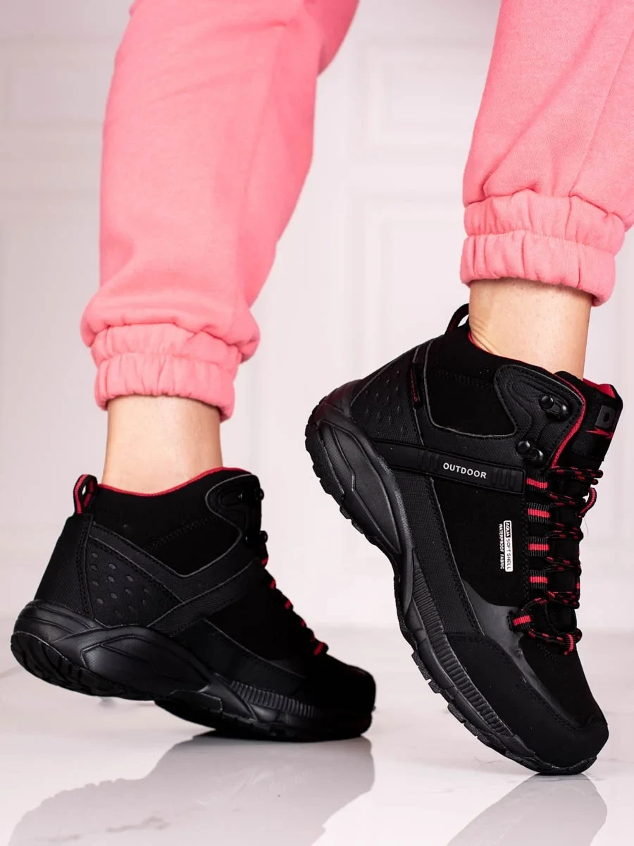 Přidání recenze k Módní dámské trekingové boty černé bez podpatku
