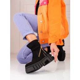 Přidání recenze k Módní kotníčkové boty černé dámské na plochém podpatku