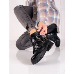 Přidání recenze k Módní kotníčkové boty černé dámské na plochém podpatku