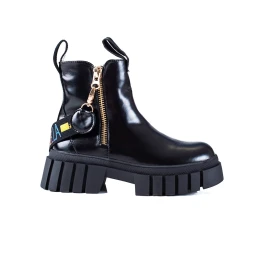 Módní kotníčkové boty dámské černé na plochém podpatku