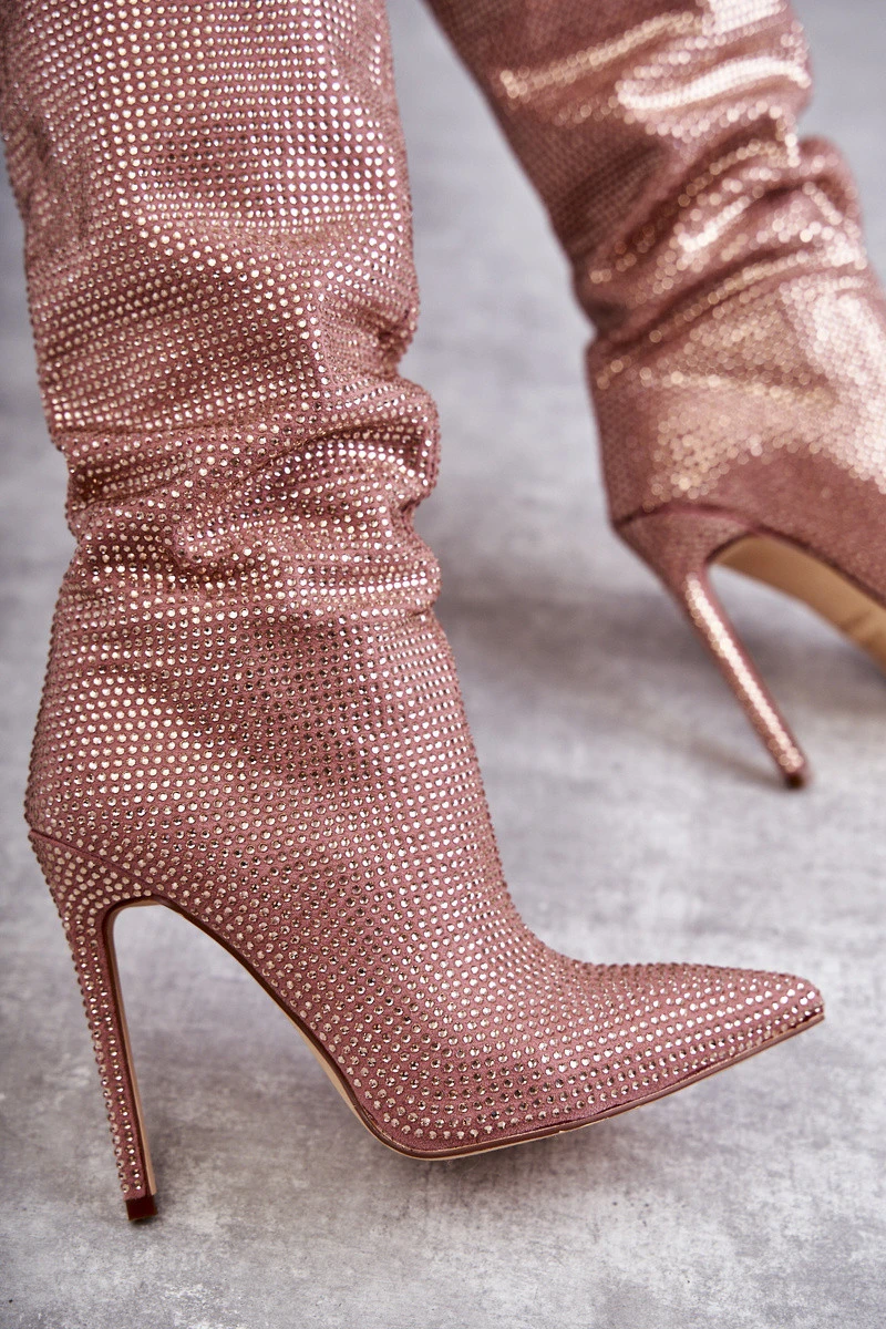 Módní kozačky na vysokém podpatku s kubickými zirkony růžove Lovisa