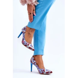 Módní kožené boty Lewski na vysokém podpatku 2659 Modrá červená