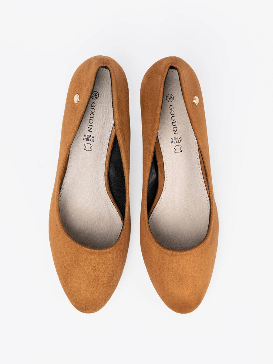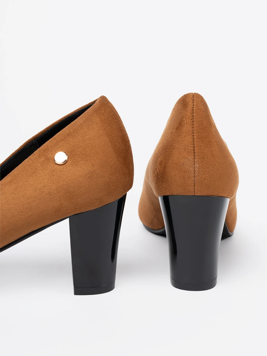 Módní lodičky Karmelowy dámské na širokém podpatku