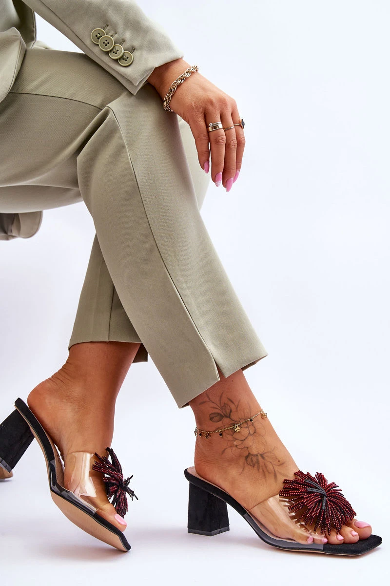 Módní pantofle na vysokém podpatku Černá model 21617785 - S.Barski
