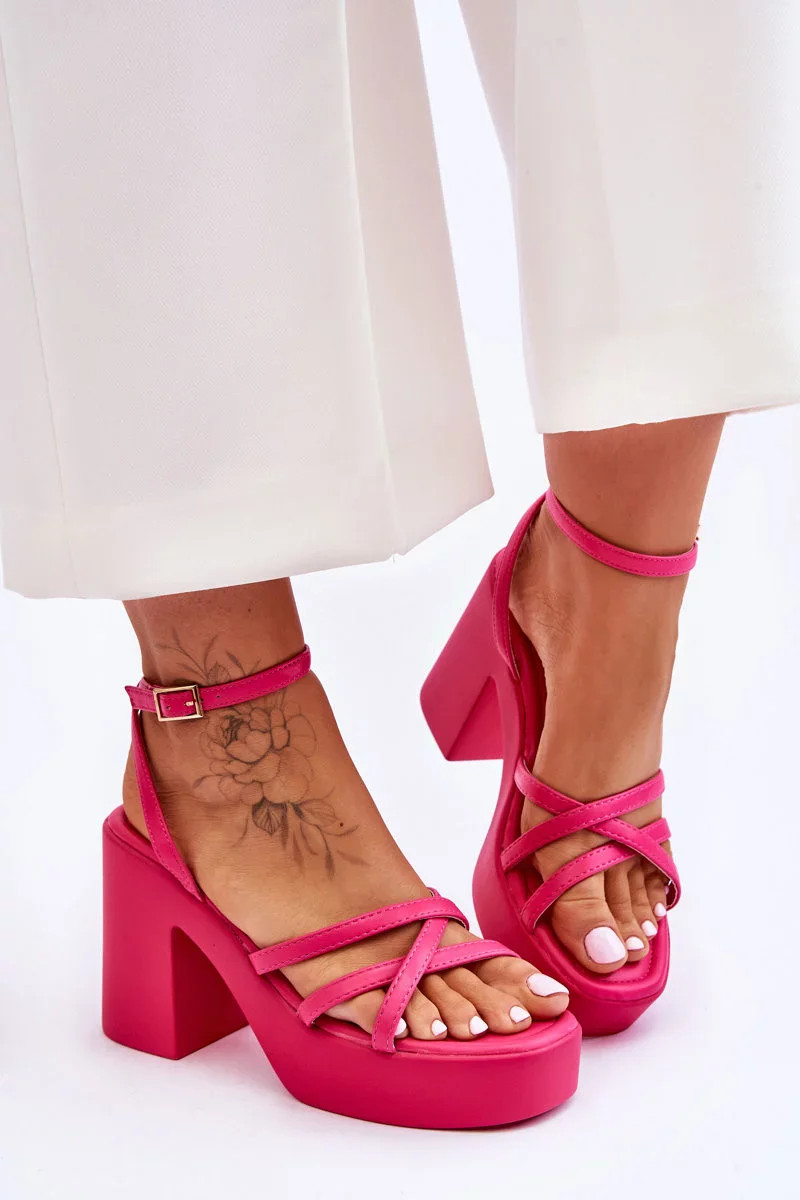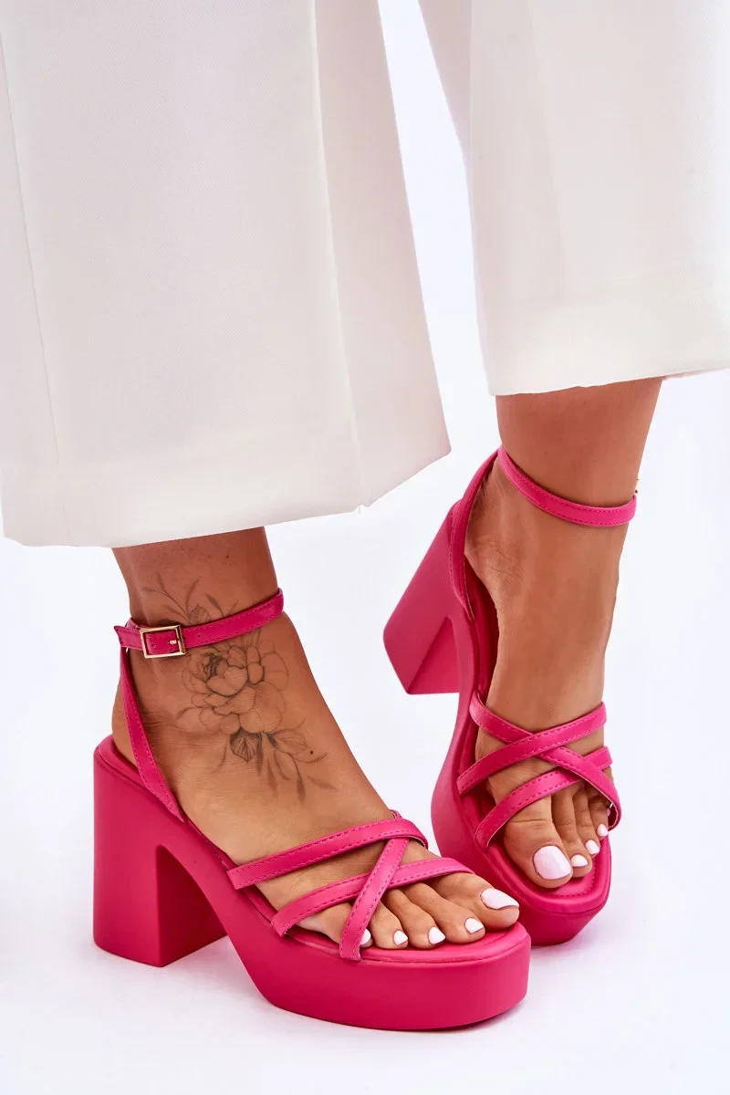 Módní sandály na vysokém podpatku s pásky Fuchsie model 21223608 - Kesi