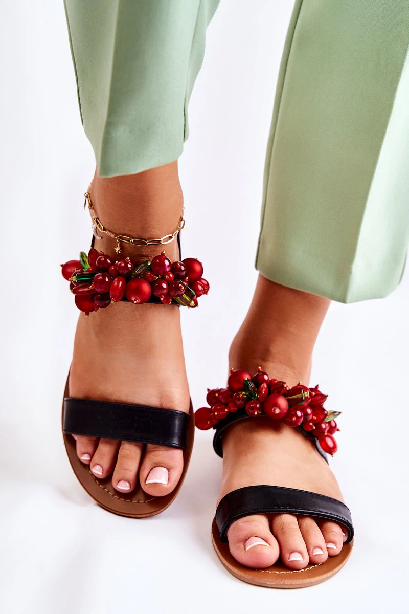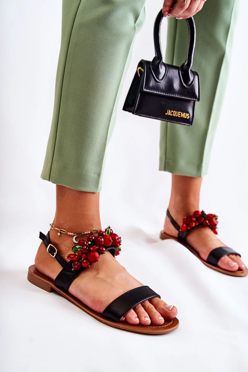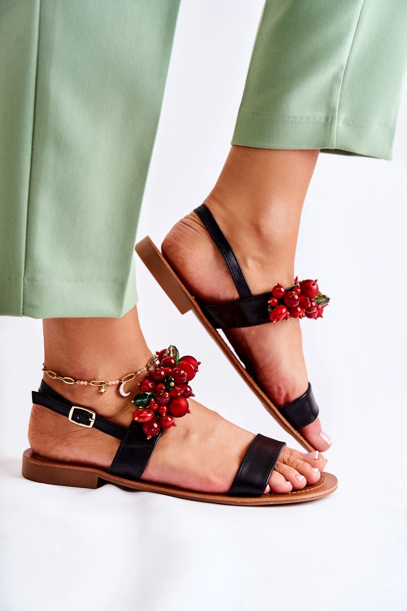 Módní sandály s korálky Černá Hally