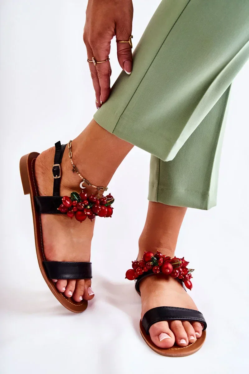 Dámské sandály jsou vyrobeny z eko kůže. Mají krásné korálky různých velikostí. Model se zapíná nastavitelným páskem s přezkou. Vložka je vyrobena z plastu. Boty jsou nasazeny na plochém podpatku s protiskluzovou podrážkou. Model, který bude ideální pro horké dny. Rozhodně byste je měli mít! Při výběru velikosti použijte tabulku velikostí.