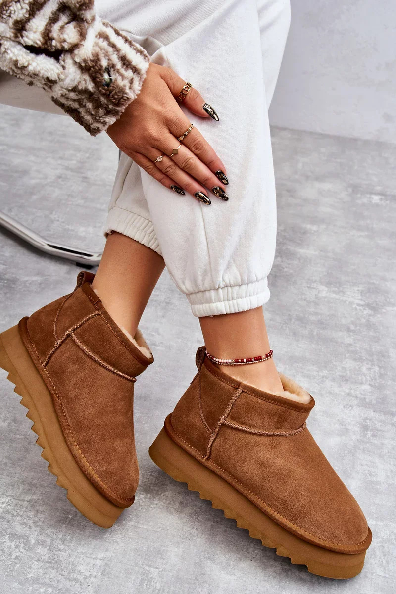 Módní semišové nízké sněhule Camel Nucca