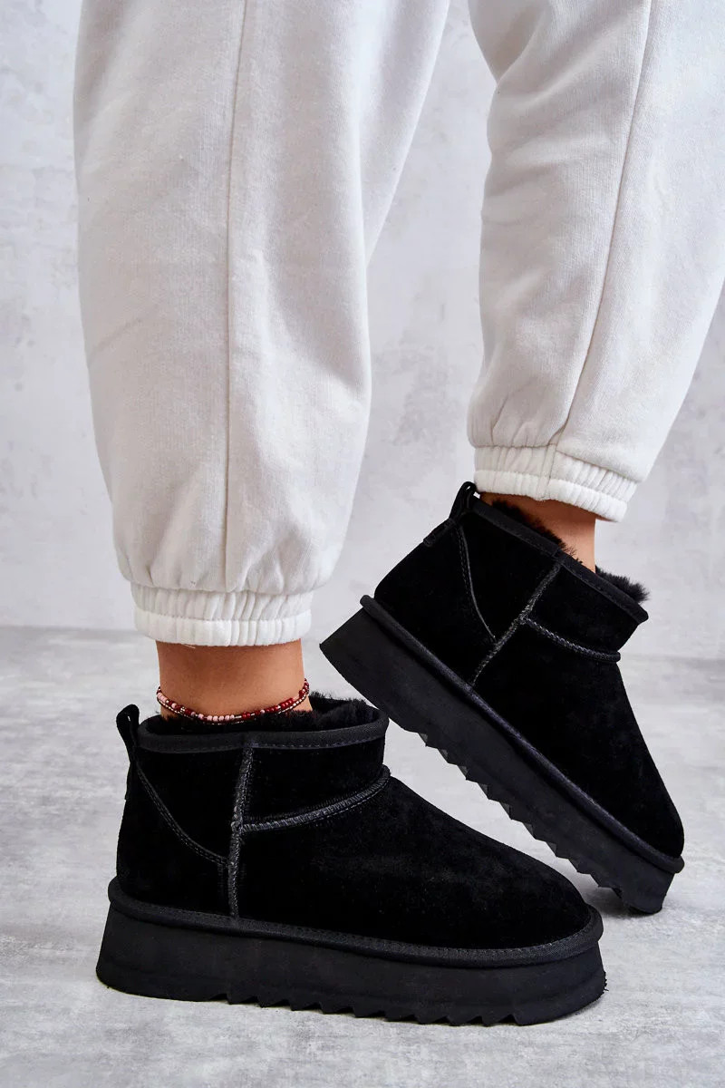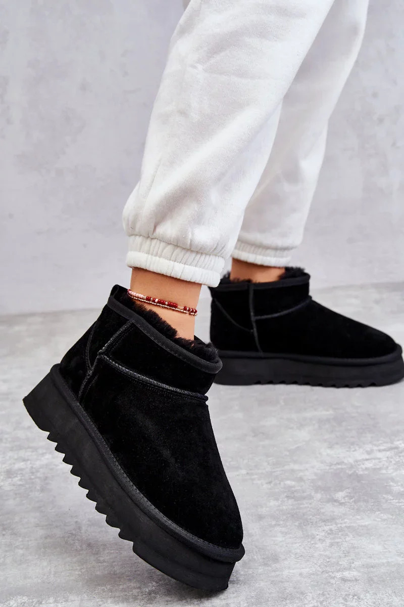 Módní semišové nízké sněhule Černá Nucca