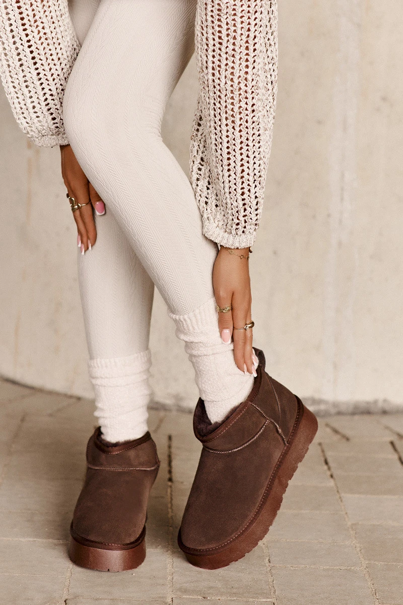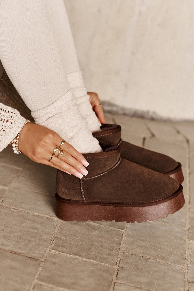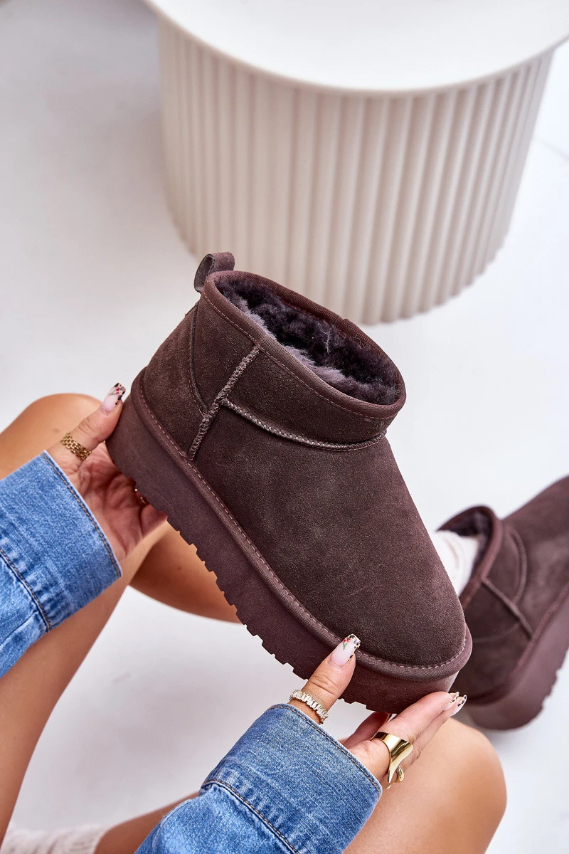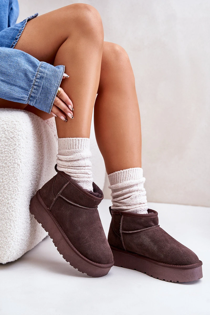 Módní Semišové Nízké Sněhule Hnědé model 21671731 - Boto