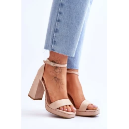 Módní semišové sandály na čtvercovém podpatku Béžové Merila