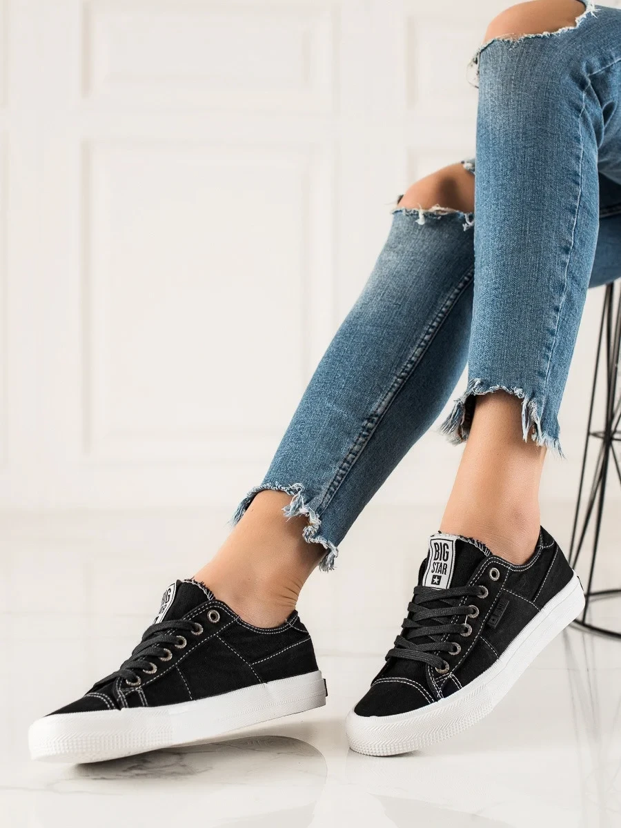 Módní tenisky černé dámské bez podpatku