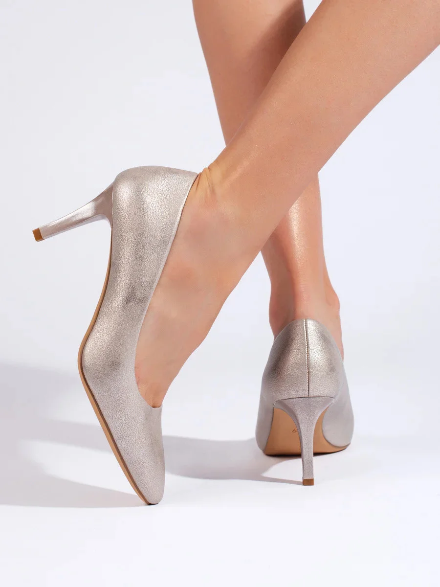 Módní zlaté dámské lodičky na jehlovém podpatku