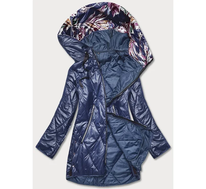 Modrá dámská bunda s ozdobnou kapucí (B8126-72)