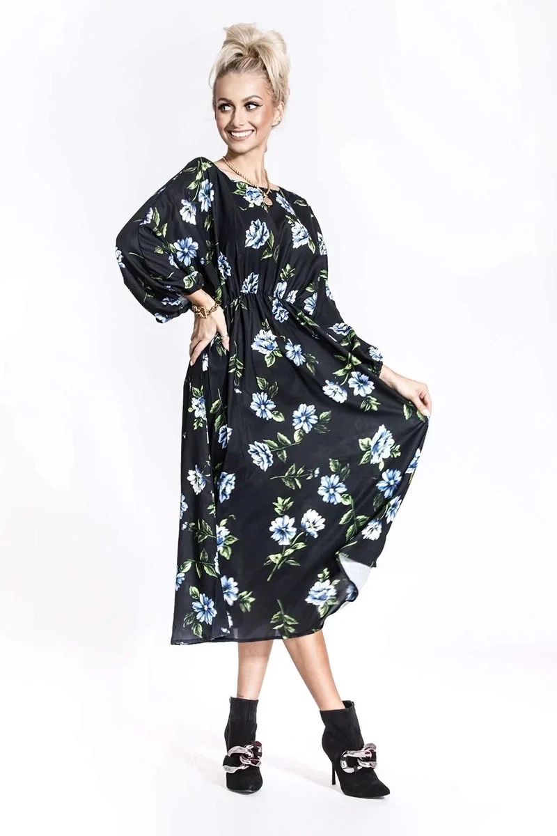 Přidání recenze k modré dámské květované šaty s kulatým výstřihem model 19514328 - Ann Gissy