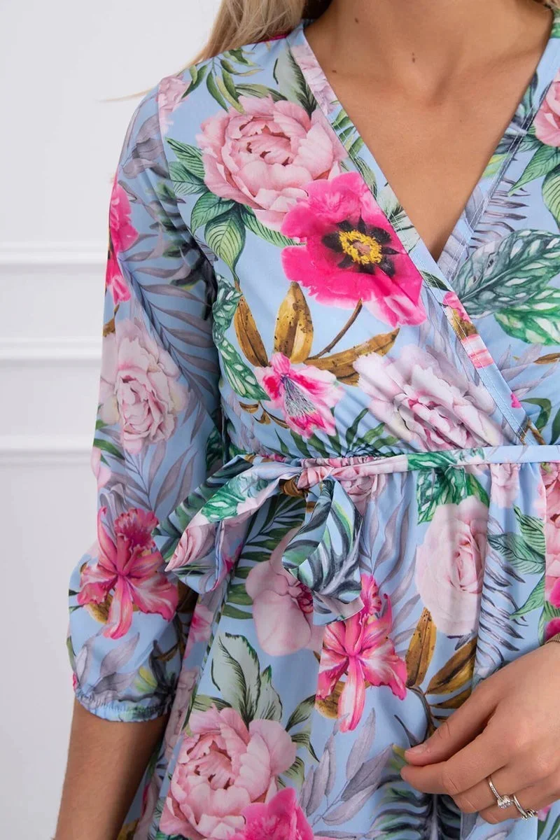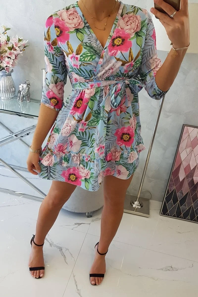 Představujeme vám pohodlné květinové šaty. Šaty s vázáním v pase a výstřihem do V. Velmi módní střih. Šaty jsou vyrobeny z vysoce kvalitního materiálu. Velikost je univerzální a vyhovuje dámám, které nosí velikost S, M nebo L.