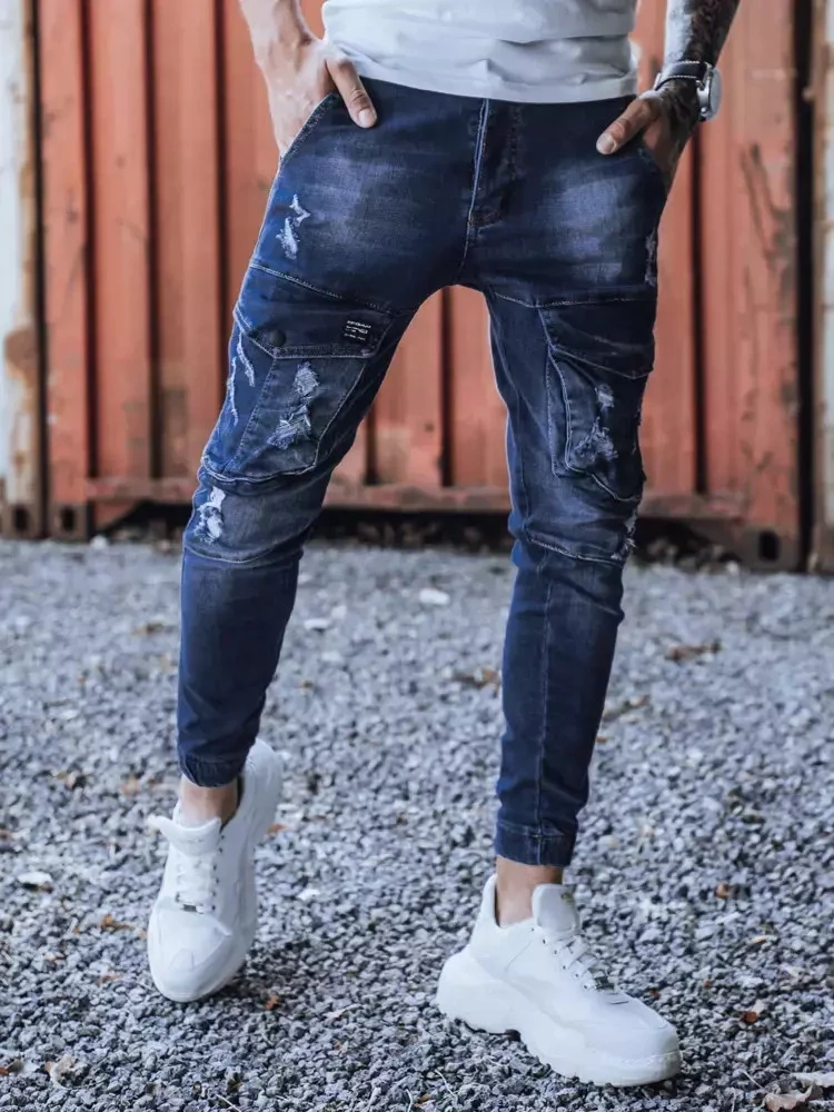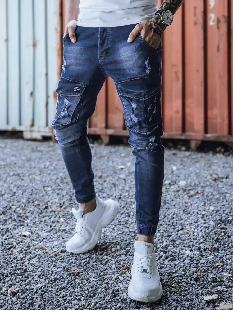 Modré pánské kalhoty FashionStreet UX3286