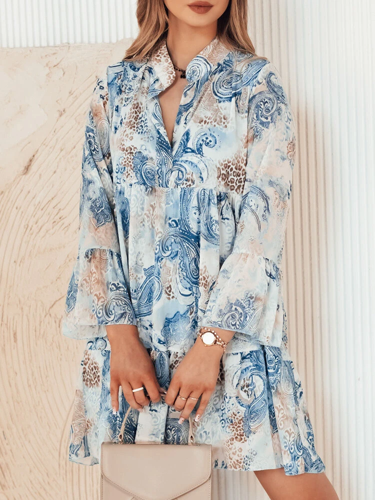 Zamilujte si jedinečný design šatů PRINSA. Rozšířené rukávy dodávají lehkost, zatímco stojatý límec s elegantním výstřihem zvýrazňuje krk a obličej. Výrazný volán ve spodní části dodává šatům vzdušnost, zatímco jemný květinový vzor upoutá pozornost. Vytvořte si s nimi nezapomenutelný vzhled!
