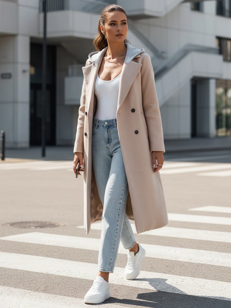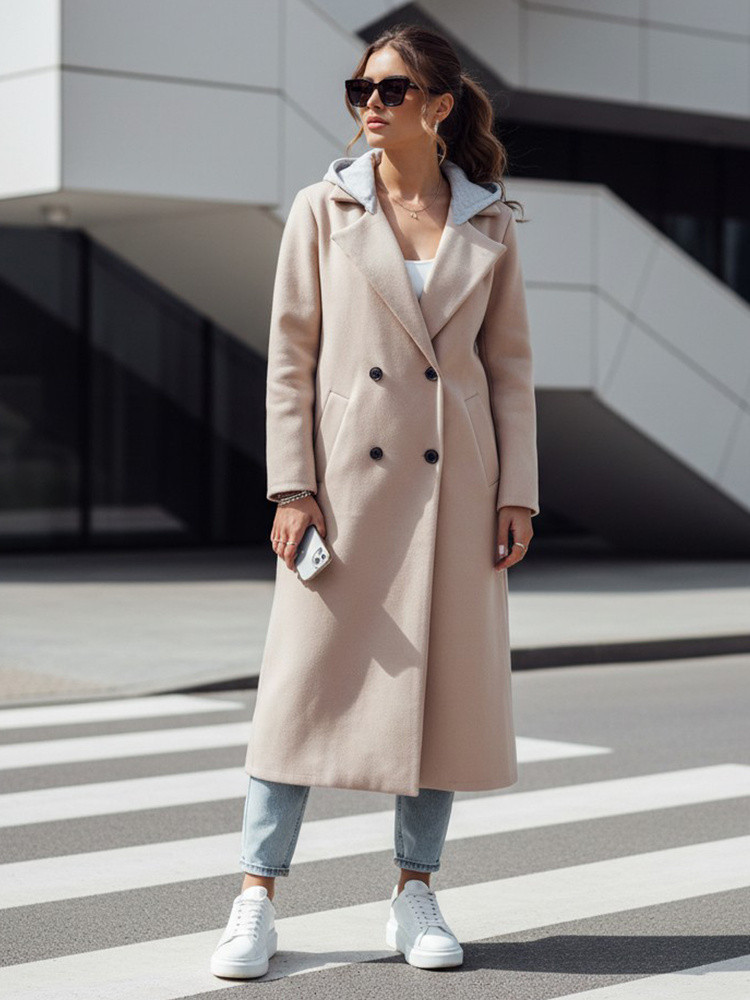 Dámský kabát klasického střihu je funkčním kouskem šatníku určeným pro každodenní nošení v přechodném období. Design založený na rovných liniích poskytuje univerzální charakter a snadné přizpůsobení různým stylizacím. Model kombinuje estetiku klasického kabátu s praktickým řešením v podobě kapuce. Materiál zachovává estetický vzhled a pohodlí při nošení.
