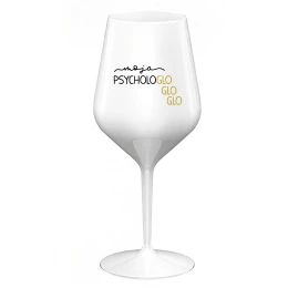 MOJA PSYCHOLOGLOGLOGLO - biely nerozbitný pohár na víno 470 ml