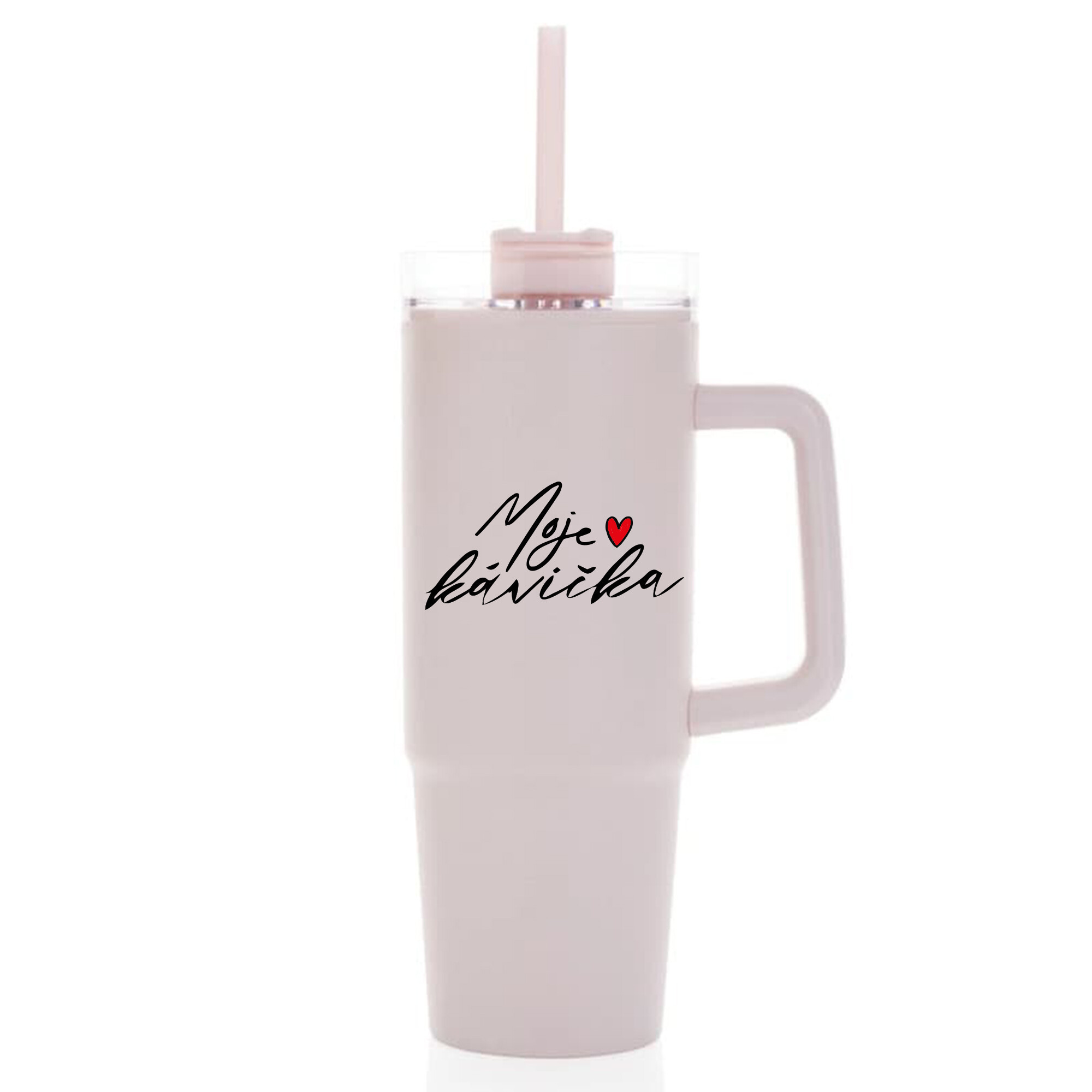 MOJE KÁVIČKA - růžový cestovní termohrnek s průhledným víčkem 900 ml
