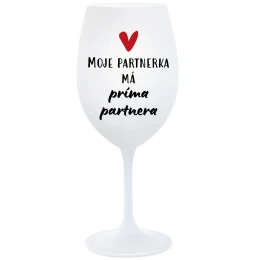 MOJE PARTNERKA MÁ PRÍMA PARTNERA - bílá sklenice na víno 350 ml