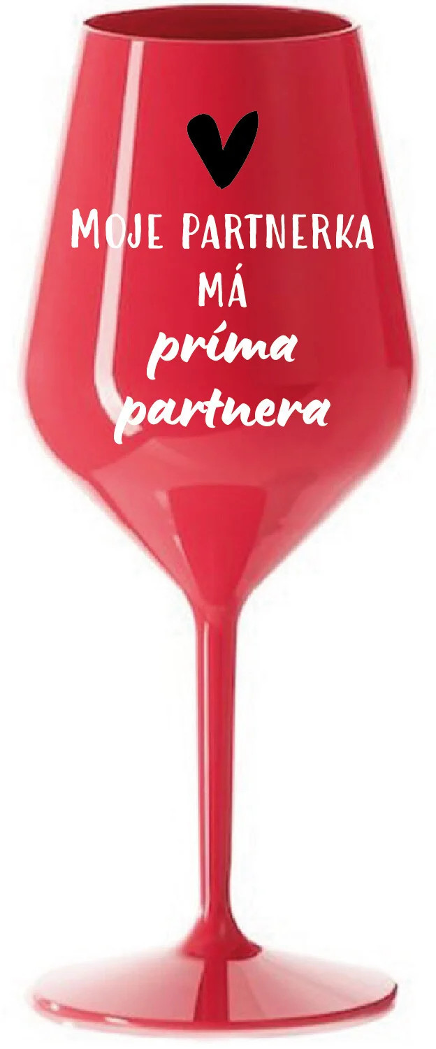 MOJE PARTNERKA MÁ PRÍMA PARTNERA - červená nerozbitná sklenice na víno 470 ml
