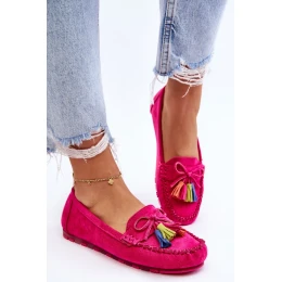 Neuvěřitelně pohodlné dámské mokasíny byly vyrobeny z ekologického semiše. Stélka z přírodní kůže zajistí pohodlí při používání. Tento střih doplní mnoho vašich stylizací. Mokasíny byly usazeny na jemné platformě. Mokasíny mají navíc ozdobnou mašli a střapce.