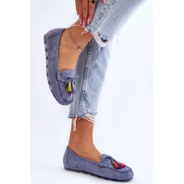Neuvěřitelně pohodlné dámské mokasíny byly vyrobeny z ekologického semiše. Stélka z přírodní kůže zajistí pohodlí při používání. Tento střih doplní mnoho vašich stylizací. Mokasíny byly usazeny na jemné platformě. Mokasíny mají navíc ozdobnou mašli a střapce.