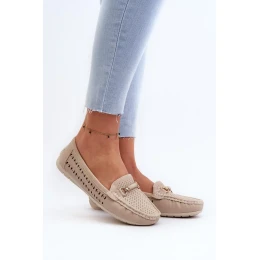 Dámské ažurové mokasíny z ekologické kůže. Zlaté zdobení na přední straně jim dodává jedinečný charakter. Měkká stélka zajistí pohodlí při používání. Tyto mokasíny se skvěle hodí k mnoha různým příležitostem a díky nim bude vaše stylizace jedinečná a stylová.