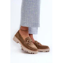Dámské mokasíny vyrobené z přírodní semišové kůže. Umístěné na plochém podpatku. Další ozdobný prvek vepředu jim dodává výjimečné kouzlo, díky čemu jsou originálním doplňkem každého outfitu. Bez ohledu na to, zda se chystáte na setkání s přáteli nebo na formálnější událost, tyto mokasíny budou ideálním doplňkem Vašeho vzhledu, dodávající mu jemnou eleganci.