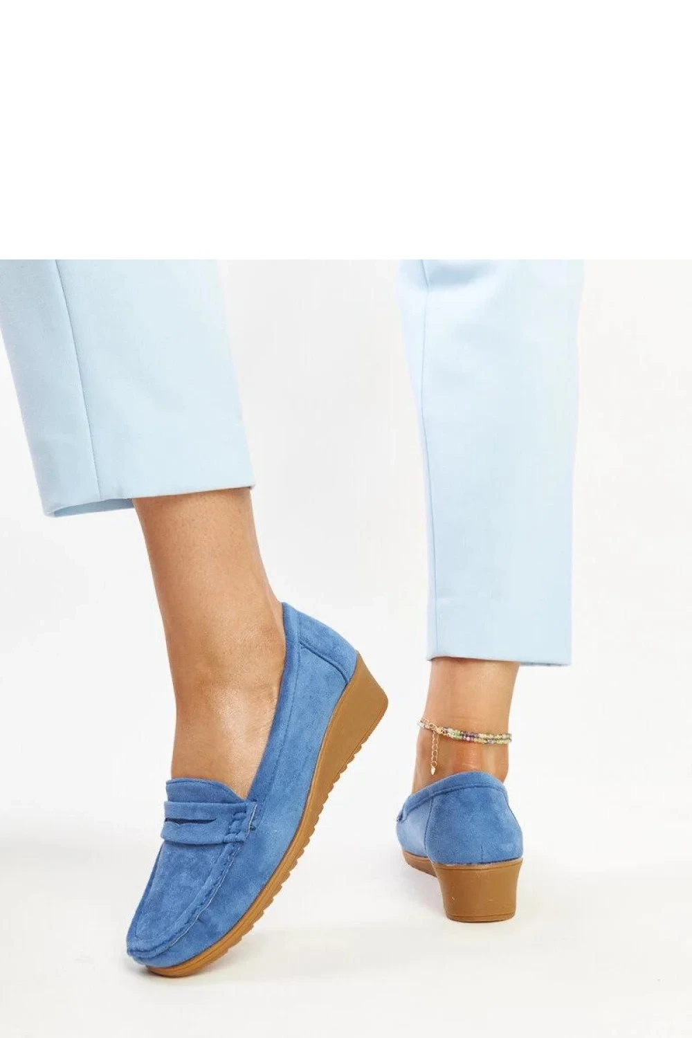 Modré semišové mokasíny na klínku Sakena Excep?ional de elegante, mokasíny z modré jelení kůže s platformou Sakena jsou skutečnou revolucí ve světě obuvi! Jejich malý, mandlový tvar špičky a slip-on design je činí nejen stylovými, ale také pohodlnými. Vyrobeny z vysoce kvalitní jelení kůže a s gumovou podrážkou, zajišťují stabilitu a komfort při nošení. Jsou perfektní pro různé příležitosti - od každodenních procházek po elegantní schůzky. Kombinujte je se svým oblíbeným oblečením a buďte v souladu s nejnovějšími trendy! Vnější materiál: Ekologická semišová kůže, Podšívka: Ne, Materiál podrážky: Guma, Barva podrážky: Hnědá, Zapínání: Nazouvací, Kolekce: Jaro/Léto.