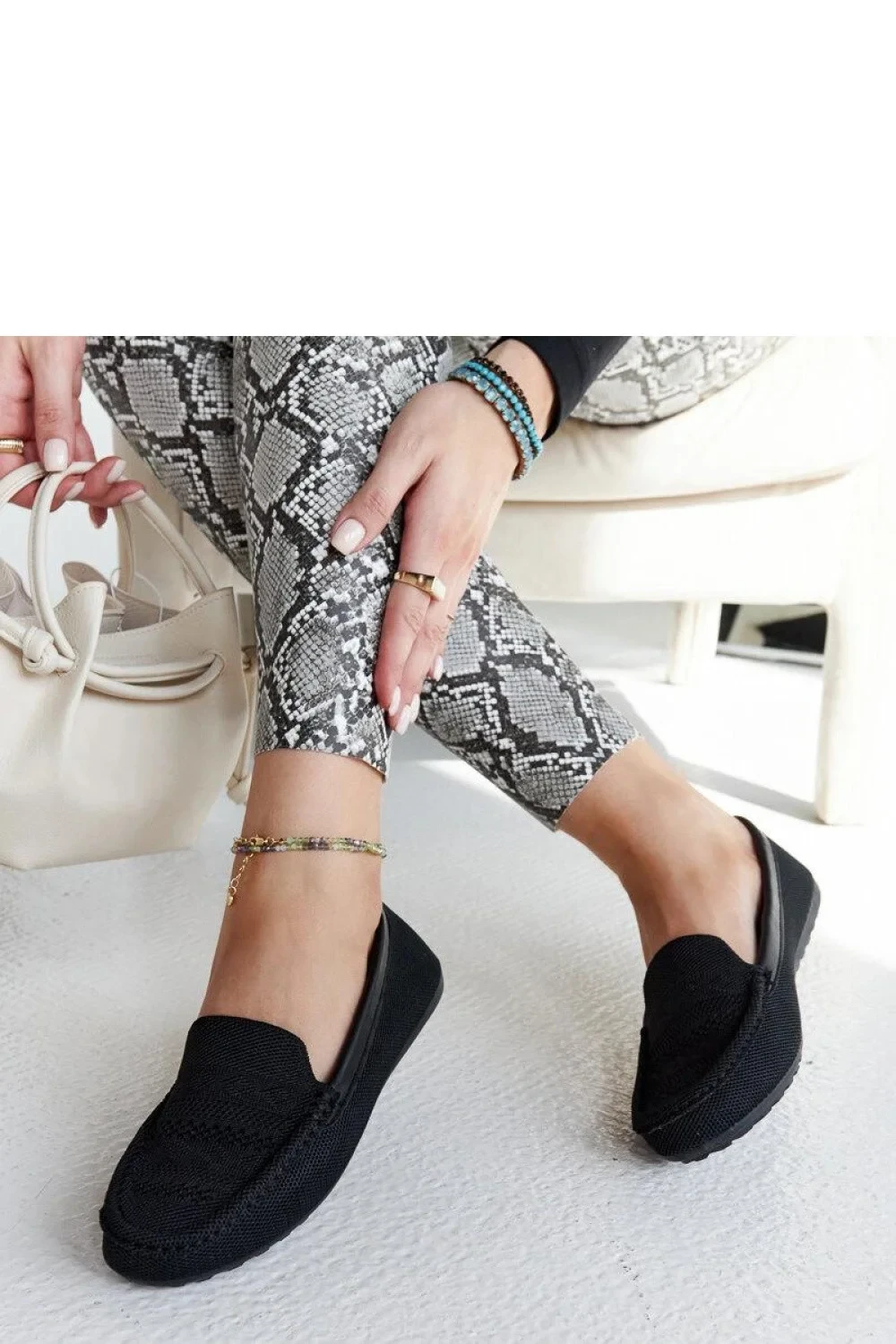 Černé textilní mokasíny Fiammetta jsou skvělou volbou na letní dny. Vyrobené z vysoce kvalitního umělého materiálu, tyto moderní mokasíny se vyznačují pohodlným nasouváním. Mají ploché podrážky a jemně zaoblený nos, co jim dodává svěží a módní vzhled. Tyto lehké boty budou skvělým doplňkem letního šatníku. Vnější materiál je látkový a podrážka je vyrobena z odolného černého umělého materiálu. Tyto stylové mokasíny určitě budou ideální volbou na teplé dny!