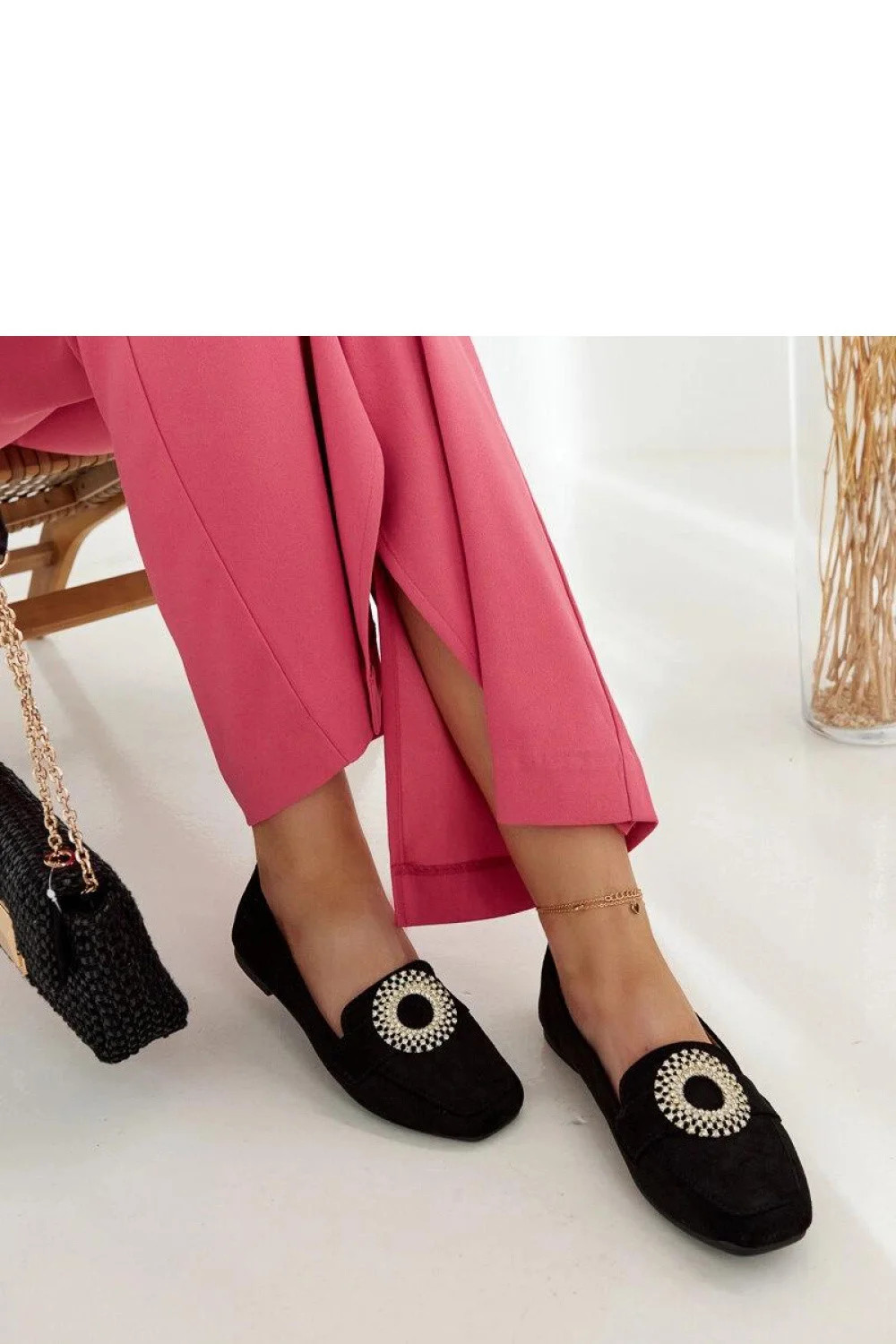 Černé mokasíny Celena jsou elegantní obuv ideální na každý den. Vyrobené z vysoce kvalitní gumy, poskytují pohodlí a odolnost. Jemně zdobené zirkony jim dodávají exkluzivní charakter. Jejich slip-on design zajišťuje nejen styl, ale také pohodlí při nošení. Nízká, čtvercová špička jim dodává moderní vzhled, který skvěle zapadá do moderních trendů. Navíc, dostupná cena z nich činí skvělou volbu pro ty, kteří si cení módy a pohodlí. Vnější materiál je z ekologické semiše, podrážka je vyrobena z černé gumy. Skvělé na kolekci Jaro/Léto.