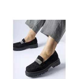 Černé mokasíny z ekologického semiše Nicholls jsou stylovým doplňkem letního šatníku. Ozdobené zirkony, tyto boty nejsou jen módní, ale také pohodlné. Nízký podpatek z gumy poskytuje stabilitu a kulatý špičatý nos dodává eleganci. Ideální na teplé dny, tyto lehké a prodyšné mokasíny jsou skvělou volbou na letní procházky nebo setkání s přáteli. Vyrobené z vysoké kvality ekologické kůže, tyto boty nejsou jen módní, ale také šetrné k životnímu prostředí. Ideální na léto!