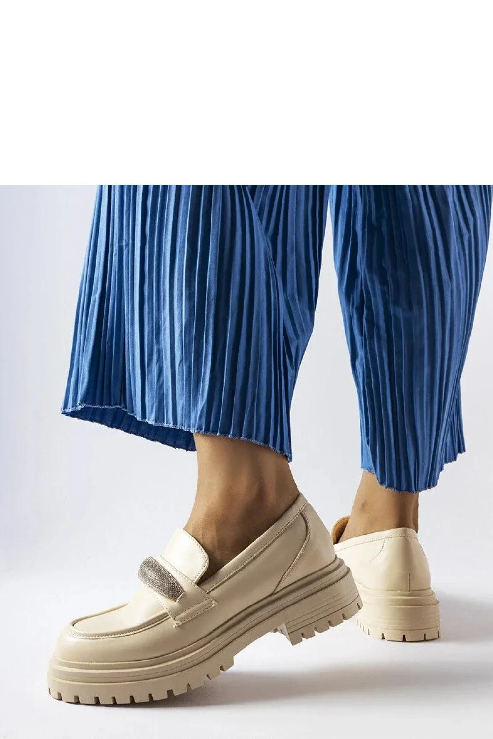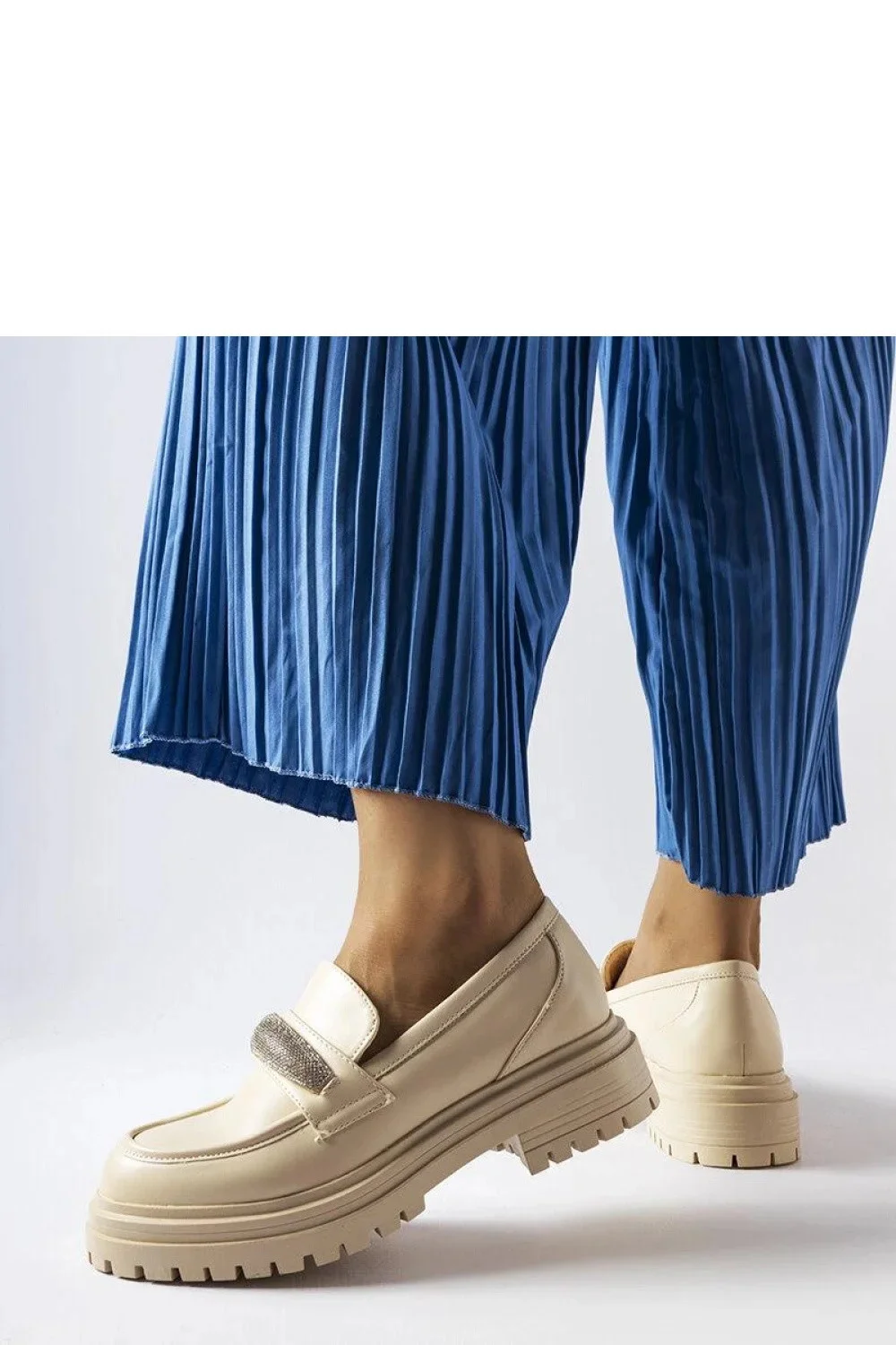Beige mokasíny s kamínky Hartford jsou vynikající volbou pro ženy, které hledají originální a stylovou obuv. Vyrobené z vysoce kvalitní ekologické kůže, mají moderní design, který skvěle zapadá do aktuálních módních trendů. Jejich kulatá špička jim dodává jedinečný charakter a nazouvací model usnadňuje rychlé obouvání a svlékání. Tyto elegantní mokasíny se hodí jak na každodenní nošení, tak na zvláštní příležitosti, dodávajíc stylizaci výjimečné kouzlo a třídu. Kamínek umístěný na svršku boty mu dodává jemný lesk, což z nich činí neobyčejný doplněk k jakékoliv stylizaci. Beige podešev z plastu skvěle ladí s barvou bot, vytvářejíc tak jednotný celek. Mokasíny Hartford jsou kombinací komfortu, stylu a originality, které jistě potěší každou ženu sledující nejnovější módní trendy. Ideální na letní dny, tyto boty budou skvělým doplněním garderoby každé stylové ženy.