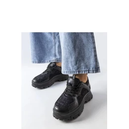 Černé masivní tenisky Brunswick jsou nezbytným prvkem šatníku každé módní ženy! Vyrobené z vysoké kvality pryže, zaručují vynikající přilnavost a pohodlí během nošení. Boty mají středně vysoký podpatek a kulatý špičatý nos, co jim dodává ženský šarm. Šněrování umožňuje ideální přizpůsobení noze a jejich univerzální design znamená, že se skvěle hodí jak do sportovních, tak do elegantních stylizací. Sáhněte po módním a pohodlném výběru - vyberte si Brunswick!