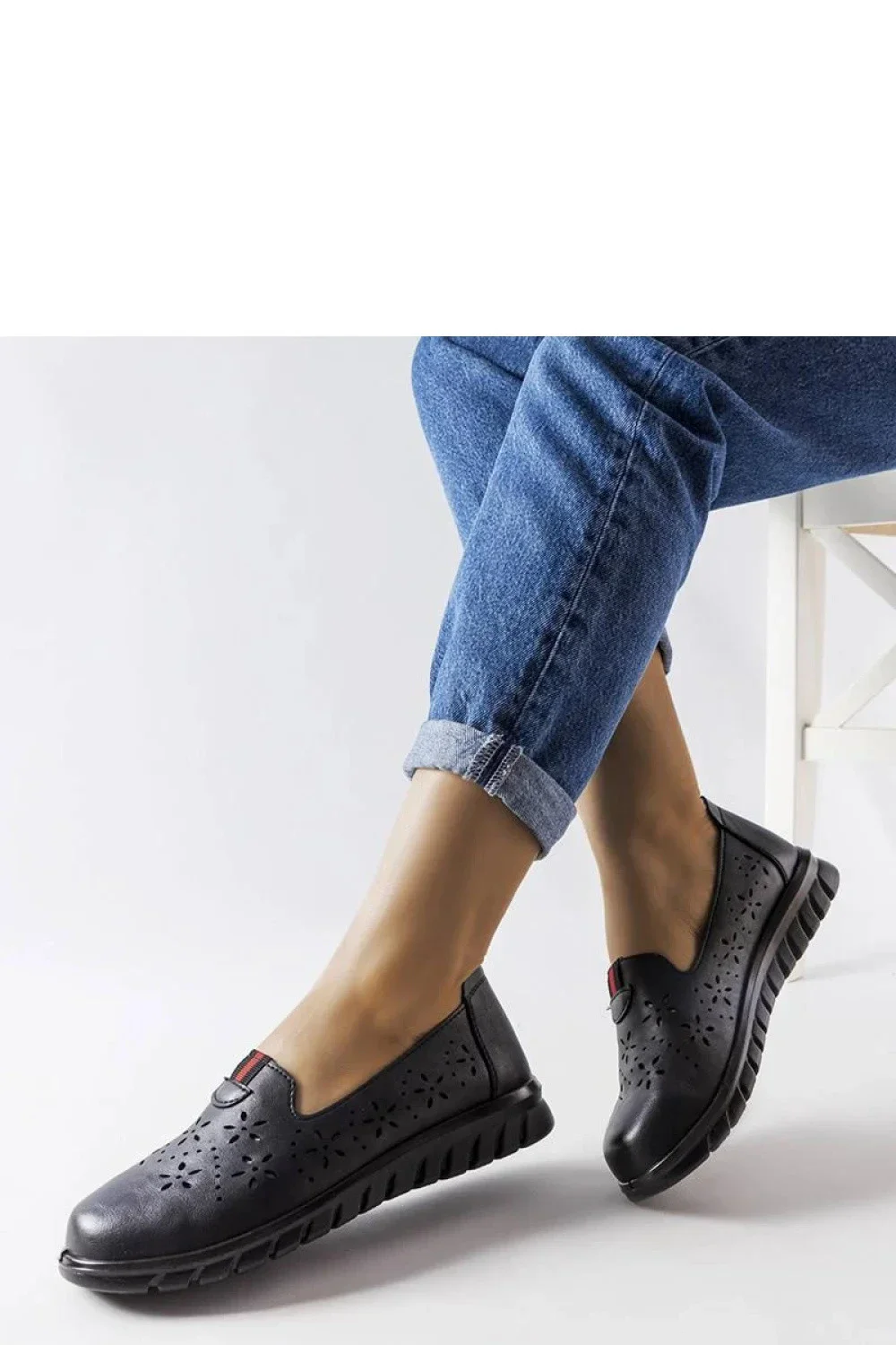Velikosti: 36-41 Černé lehké mokasíny Joli jsou ideální obuví na jaro a léto. Jejich univerzální barva zajišťuje, že se hodí k mnoha stylizacím, jak k těm ležérním, tak i k těm elegantnějším. Kombinace eko-kůže a plastu zajišťuje, že jsou trvanlivé a snadné na údržbu. Kulatá špička a plochý podpatek zajišťují stabilitu a pohodlí při chůzi. Tyto módní mokasíny jsou také velmi praktické, protože se snadno nazouvají a svlékají. Díky nim se každá žena může cítit sebevědomě a stylově na každodenní bázi.