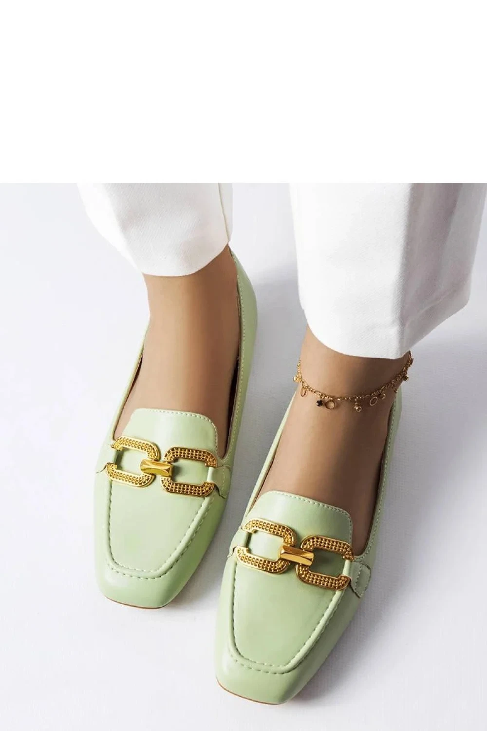 Zelené mokasíny s přezkou Rousseau jsou ideální volbou pro nadcházející léto. Vyrobené z ekologické kůže, tyto mokasíny na ploché podrážce nejsou pouze stylové, ale také pohodlné. Charakteristické prošívání vpředu a lesklá aplikace jim dodávají eleganci. Výstelka z měkké pěny poskytuje dodatečný komfort nošení. Univerzální barva zaručuje, že budou ladit s mnoha outfitmi a standardní velikost usnadňuje výběr správného rozměru. Skvěle se hodí i na úzkou nohu. Zapínání na zástěrku usnadňuje rychlé obouvání. Ideální na letní procházky nebo schůzky ve městě.