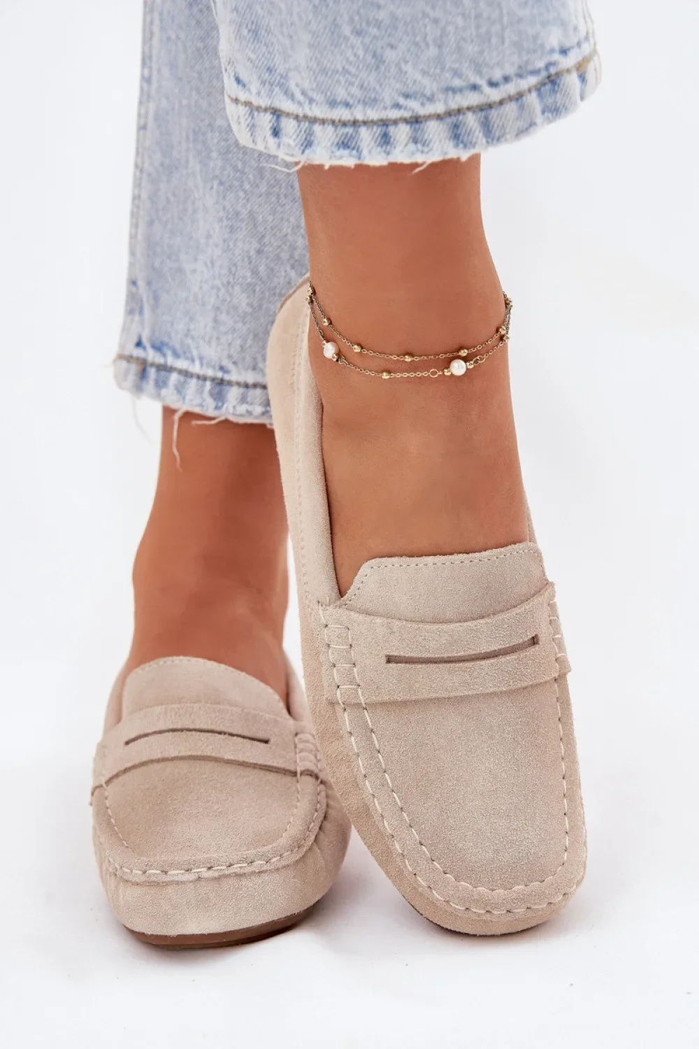 Dámské mokasíny od značky Big Star, vyrobené z kvalitní přírodní nubukové kůže, jsou klasikou elegance a pohodlí. Zaoblené špičky zajišťují pohodlí po celý den, a měkká kožená vložka garantuje odpovídající amortizaci. Klasický střih těchto mokasínů je činí vhodnými k mnoha stylizacím, jak na víkend, tak na formálnější příležitosti. Skvělé na denní nošení, tyto mokasíny představují elegantní a pohodlnou volbu pro každou příležitost.
