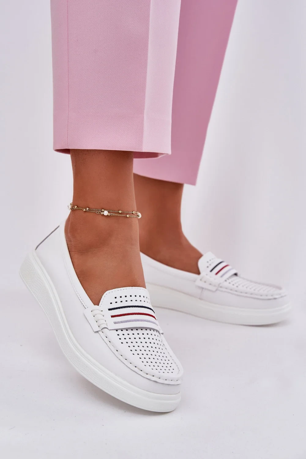 Dámské mokasíny vyrobené z přírodní kůže. Umístěné na jemné platformě. Zaoblené špičky zaručují pohodlí a měkká kožená vložka pečuje o správnou amortizaci. Lehká konstrukce dělá model mimořádně pohodlným, ideální pro každodenní stylizace. Tyto mokasíny spojují funkčnost se subtilním, moderním stylem.