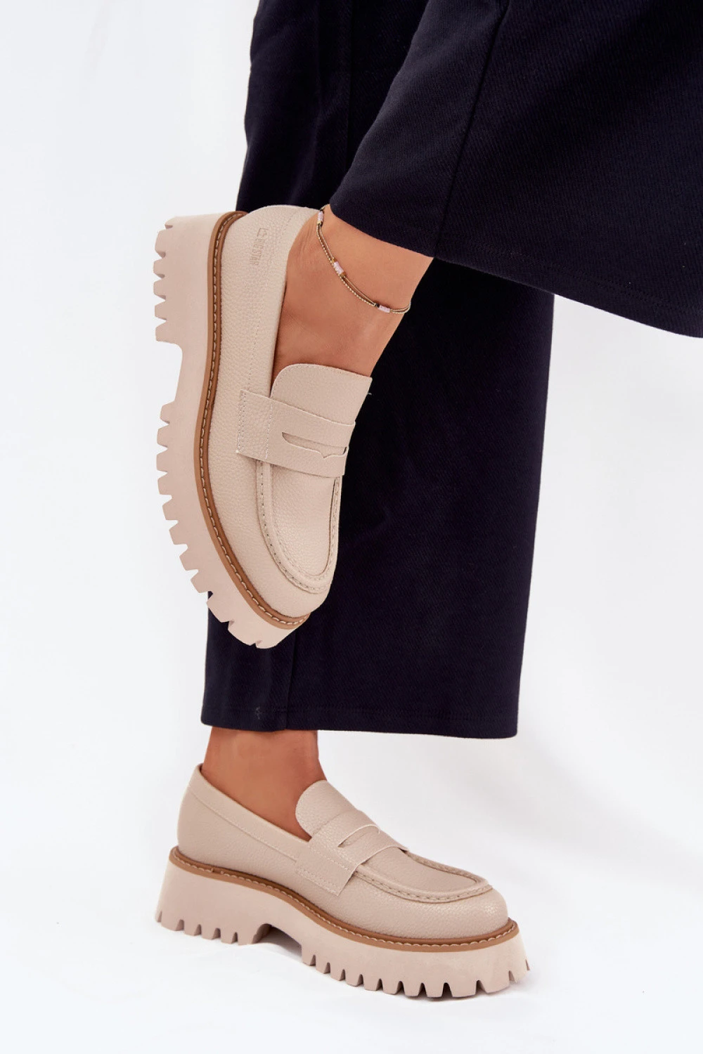 Dámské mokasíny od značky Big Star jsou kombinací klasiky s moderním vzhledem. Vyrobené z vysoce kvalitní ekokože zaručují odolnost a pohodlí při nošení. Umístěné na platformě a s plochým podpatkem poskytují pohodlí po celý den. Díky své univerzální formě se skvěle hodí do mnoha stylizací, dodávají jim subtilní eleganci a moderní charakter.