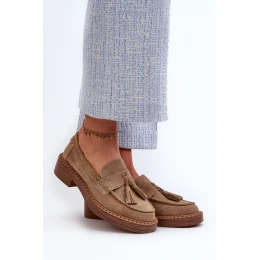 Dámské mokasíny vyrobené z přírodního semiše. Umístěné na plochém, stabilním podpatku. Třásně jim dodávají jedinečný šarm. Tyto mokasíny budou ideálním doplňkem mnoha různých stylizací, jak casualových, tak i elegantnějších.