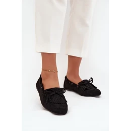 Dámské mokasíny z eko semiše spojují pohodlí s módním stylem. Model je zdobený ozdobnými šňůrkami s mašlí, které dodávají lehkost a charakter, a zaoblenými špičkami zajistí pohodlí při nošení. Měkká vložka z eko kůže zaručuje pohodlí i při delší chůzi, čímž se mokasíny skvěle hodí do každodenních, casualových stylizací.