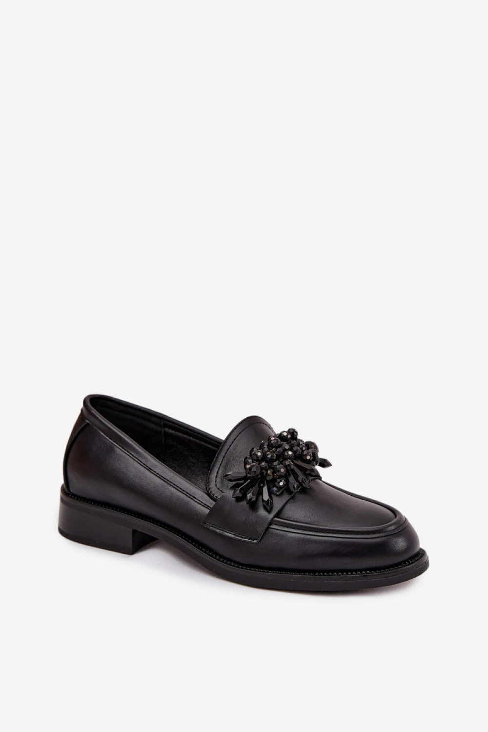 Mokasíny vyrobené z ekokože jsou klasickou nabídkou, která spojuje eleganci s každodenním pohodlím. Model na plochém podpatku poskytuje pohodlí během nošení a měkký svršek se skvěle přizpůsobí noze. Na přední části boty je umístěn ozdobný prvek, který dodává celku stylový akcent. Jsou to univerzální mokasíny, ideální jak do práce, tak na běžné nošení skvěle ladí s džíny, látkovými kalhotami nebo sukni.