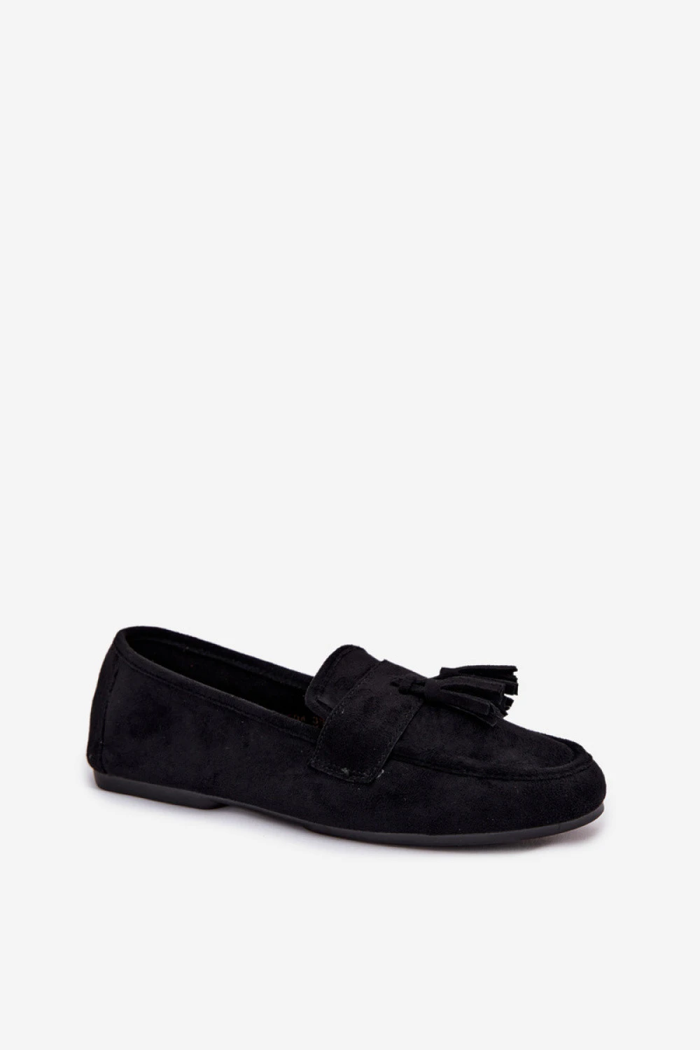 Mokasíny vyrobené z ekologického semiše jsou pohodlnou a stylovou volbou na každý den. Plochá podrážka a měkká vložka zajistí pohodlí při nošení a klasický střih dělá model univerzálním a snadno kombinovatelným. Vpředu je pásek zdobený řasami, který obuvi dodává decentní, ležérní charakter. Mokasíny se skvěle hodí do každodenních outfitů.